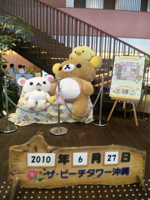 沖縄旅行で泊まっているホテルザビーチタワー沖縄にはリラックマプランなんてものもあるらしい。部屋にこんなぬいぐるみがあったら子供のテンションは一気にあがりそうだ!